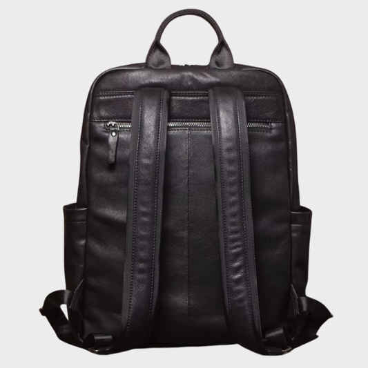 Mochila de Couro Com Alça Arqueada e Bolsos Extras Para Notebook Axton