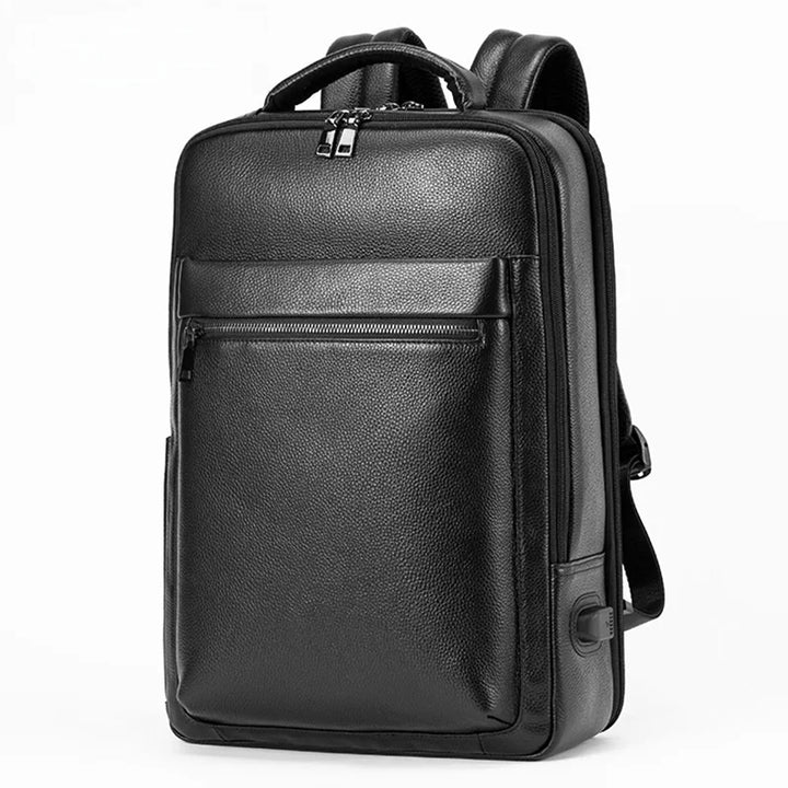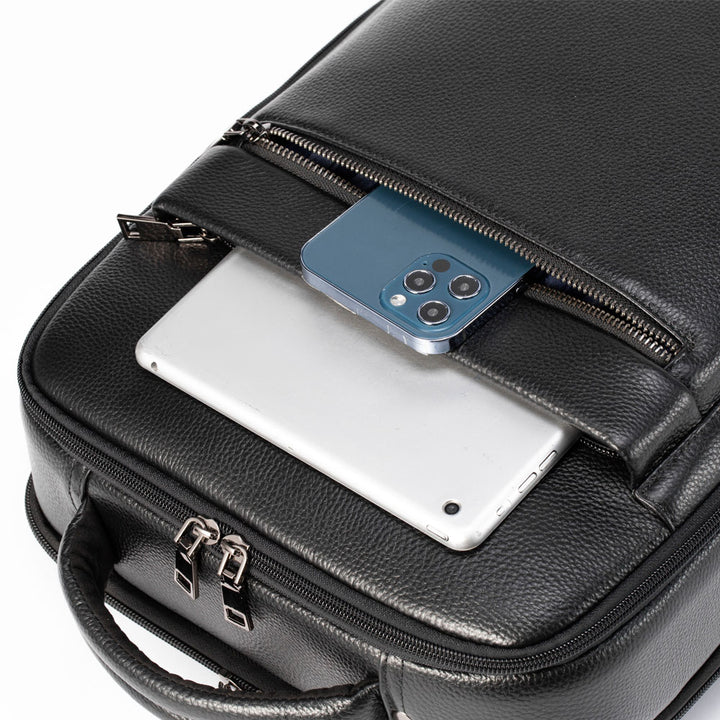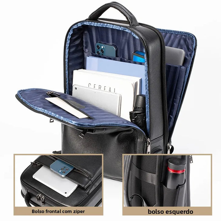 Mochila Executive em Couro Liso e Interior Expansivo - Preto