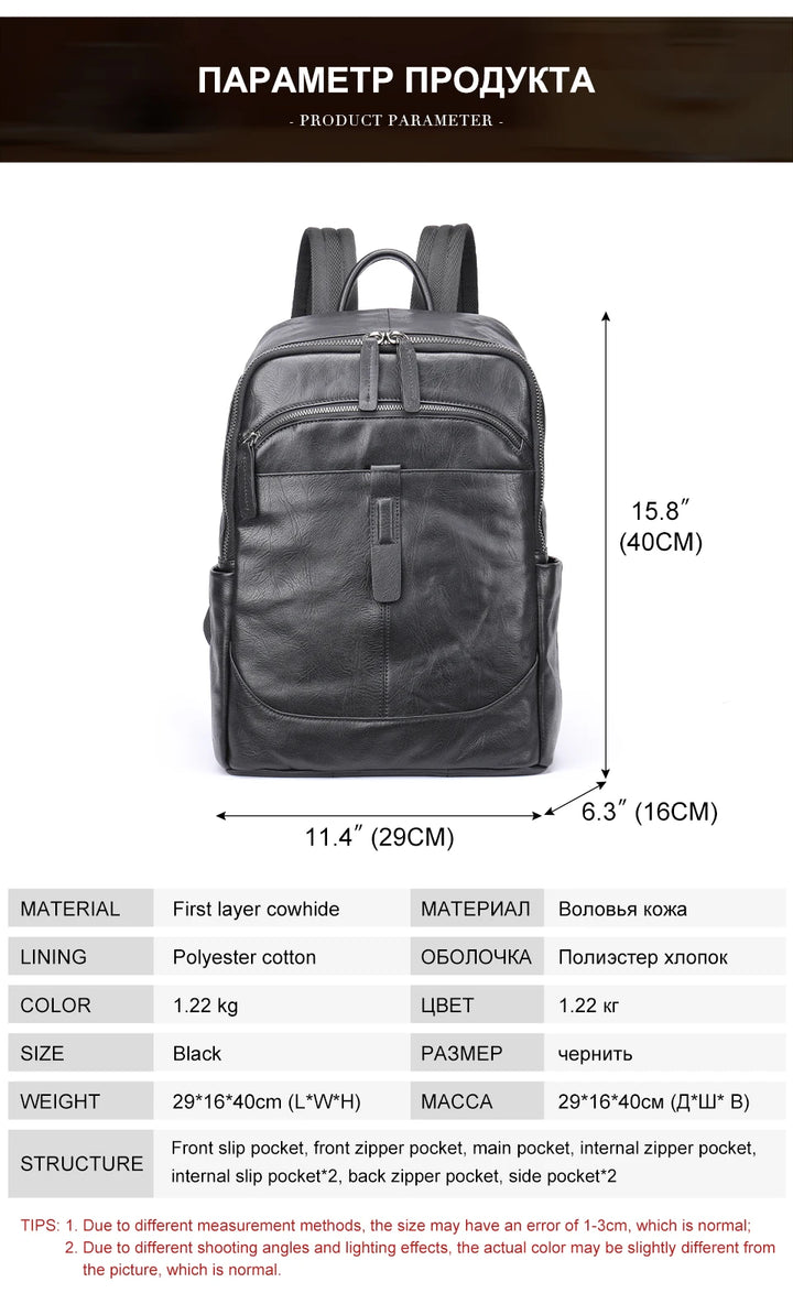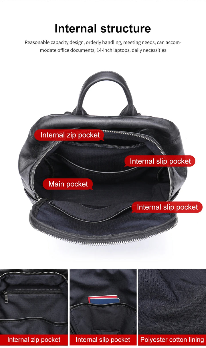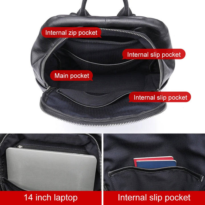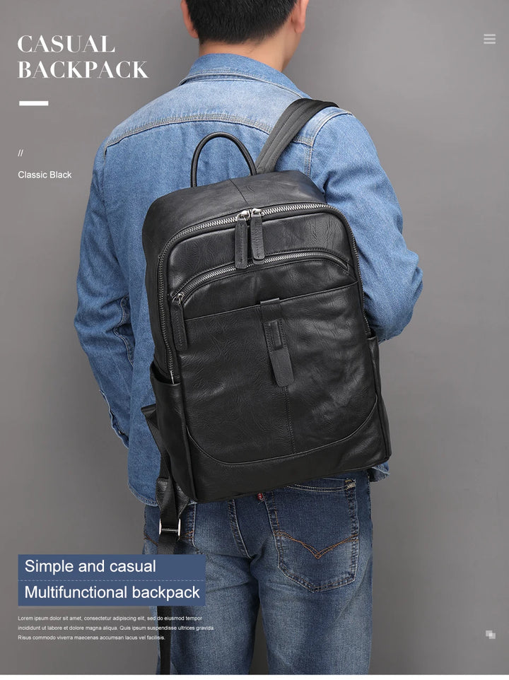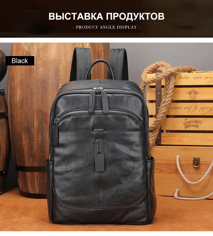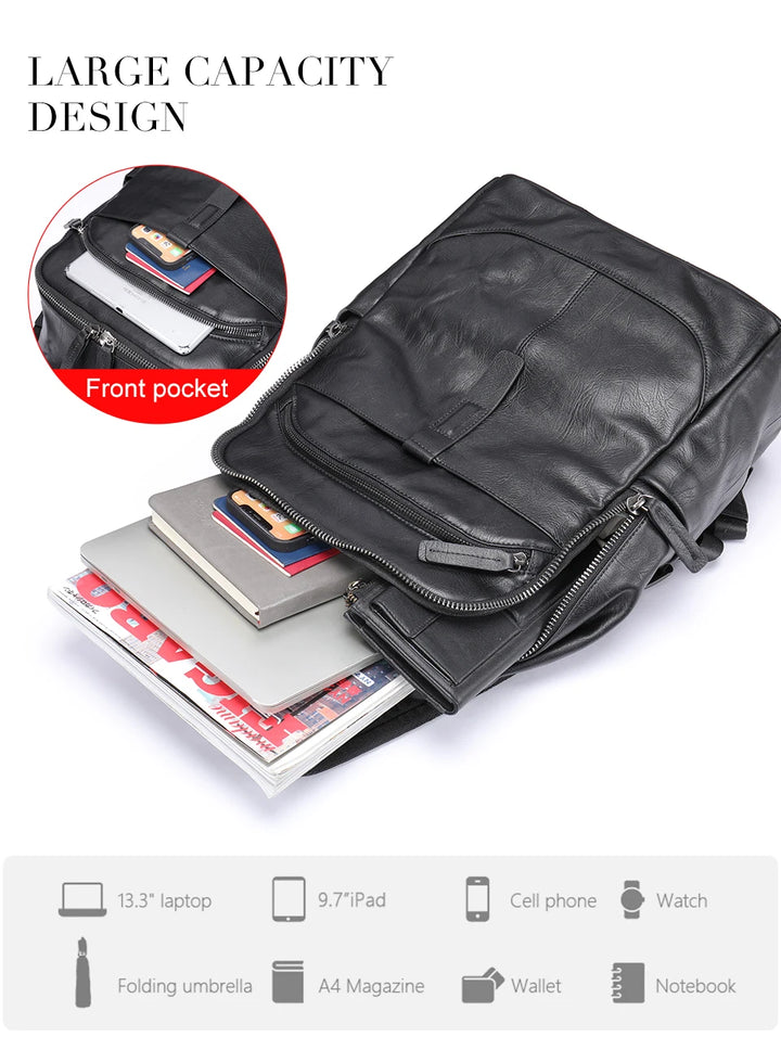 MVA Brand Backpacks For Men Leather 14" Laptop Computer Backpack Man Bag For Man Fashionable Backpack Camera Travel Schoolbag