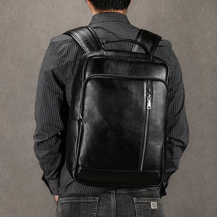 Mochila Executive em Couro Liso para Notebook 15" - Preto